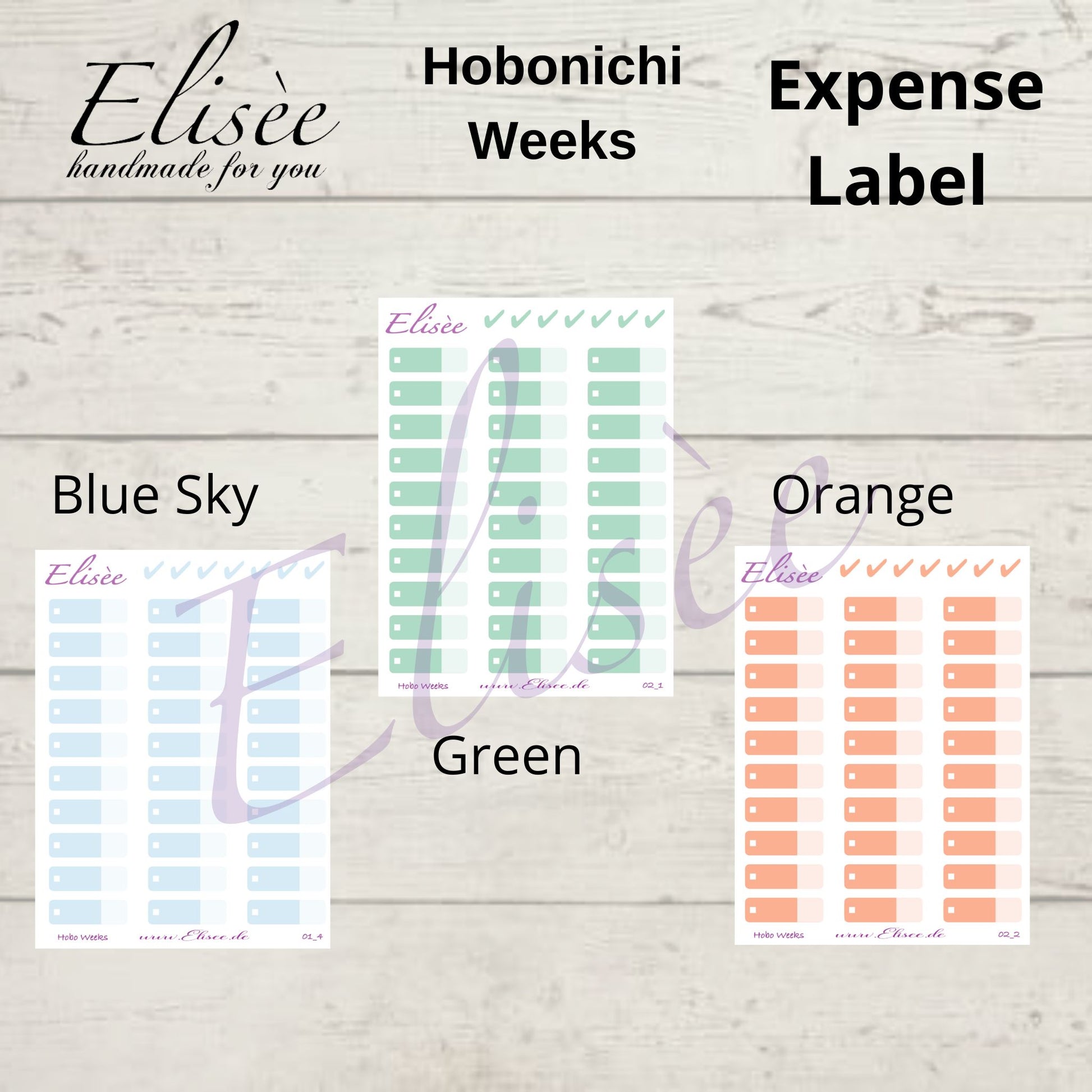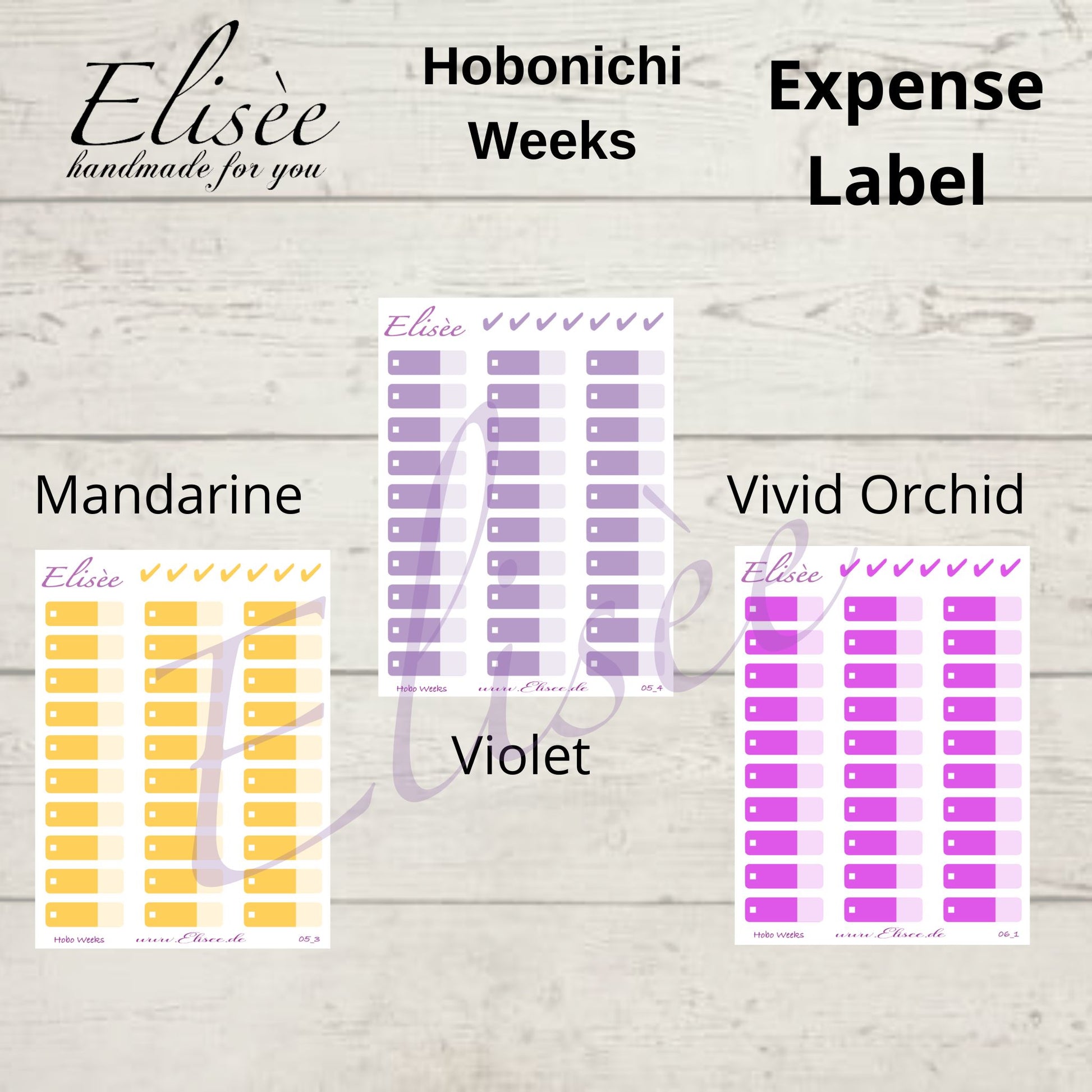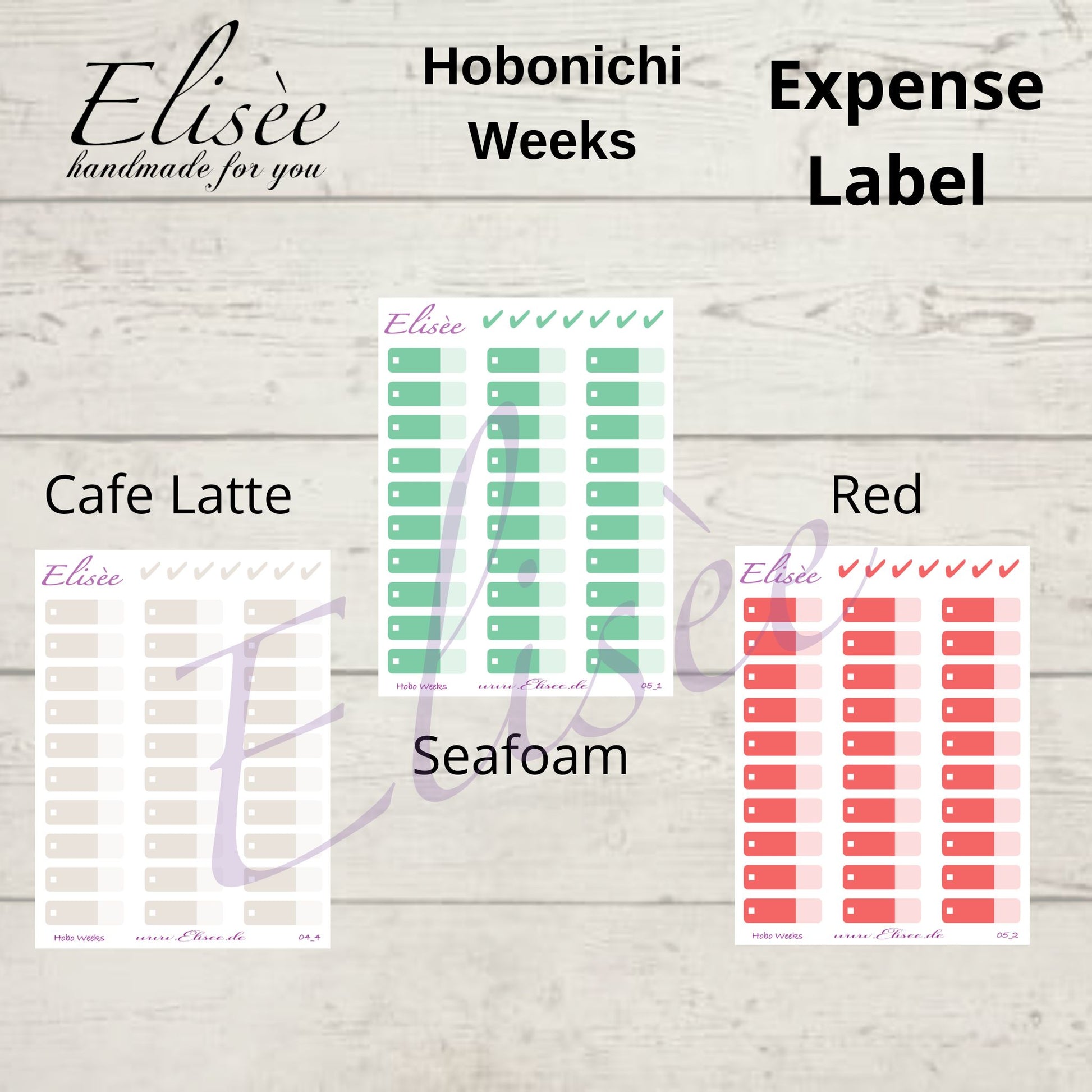 You will receive 30 Expense Tracker stickers and color-coordinated checkmarks.