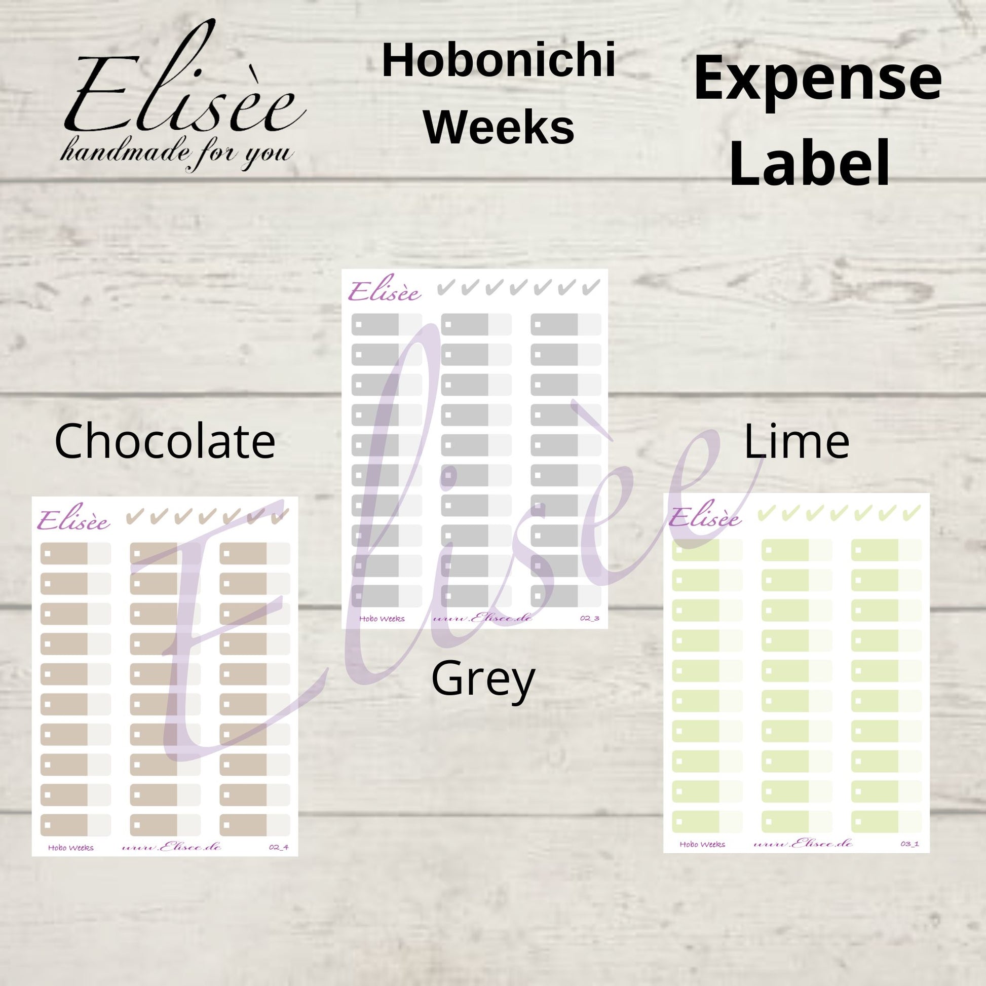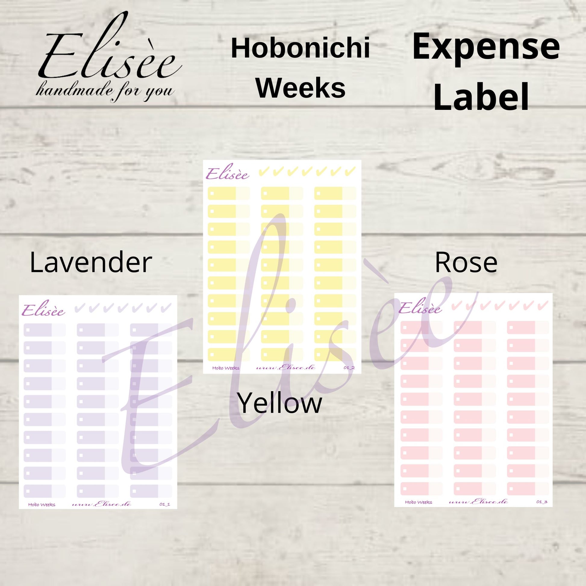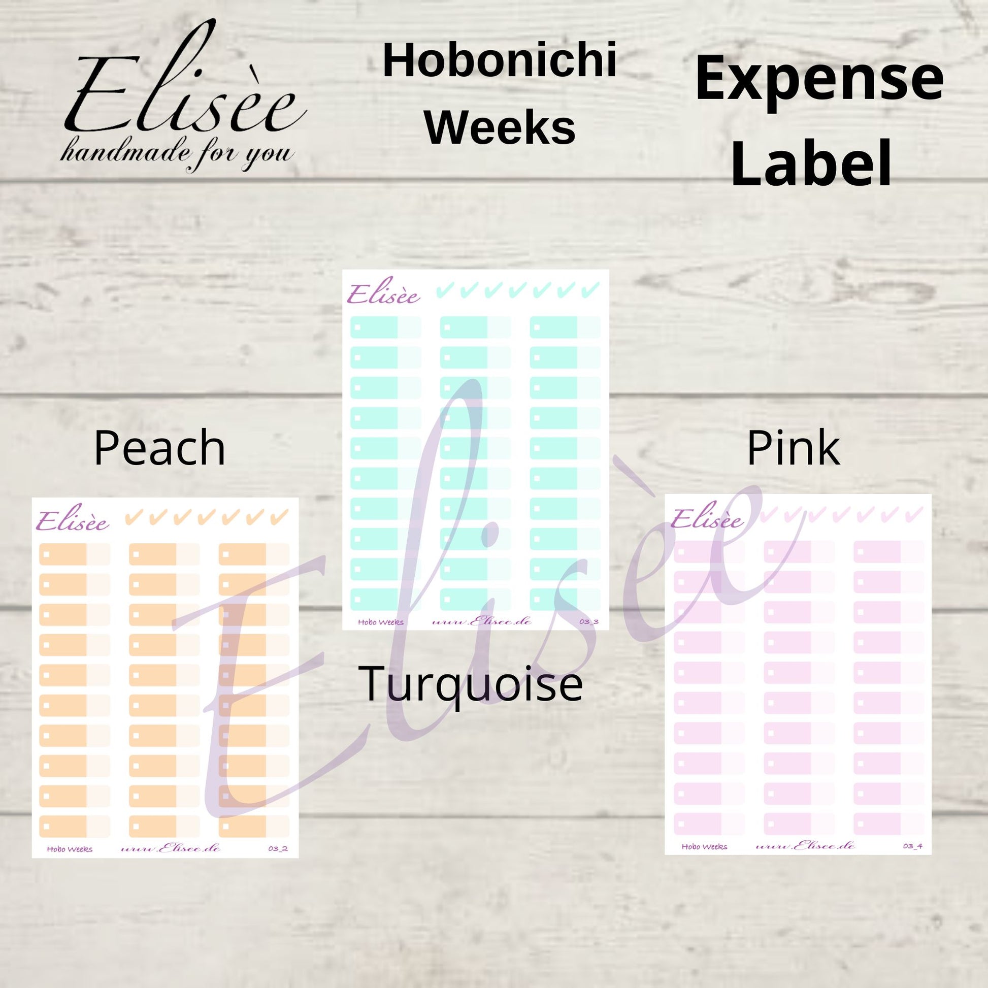 You will receive 30 Expense Tracker stickers and color-coordinated checkmarks.