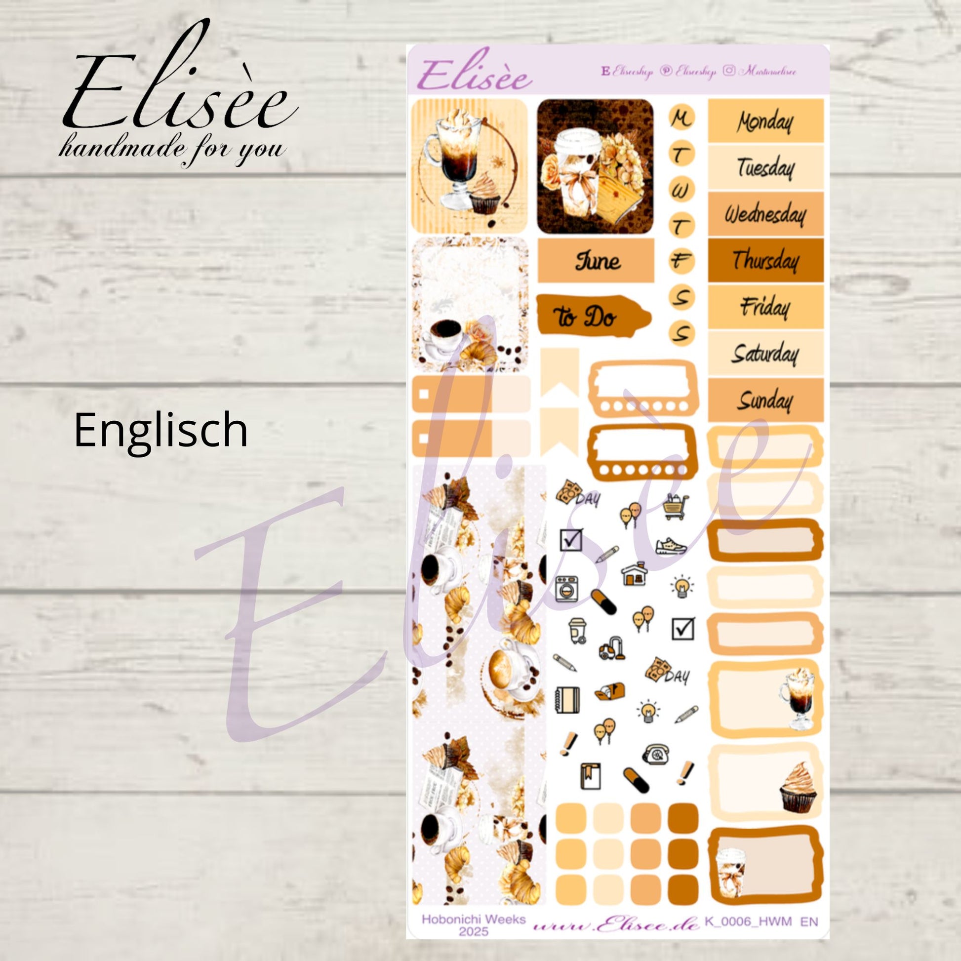 K0006_"BUT FIRST COFFEE" Juni 2025 Monatskit Hobonichi Weeks / Personal Planer / Bullet Journal