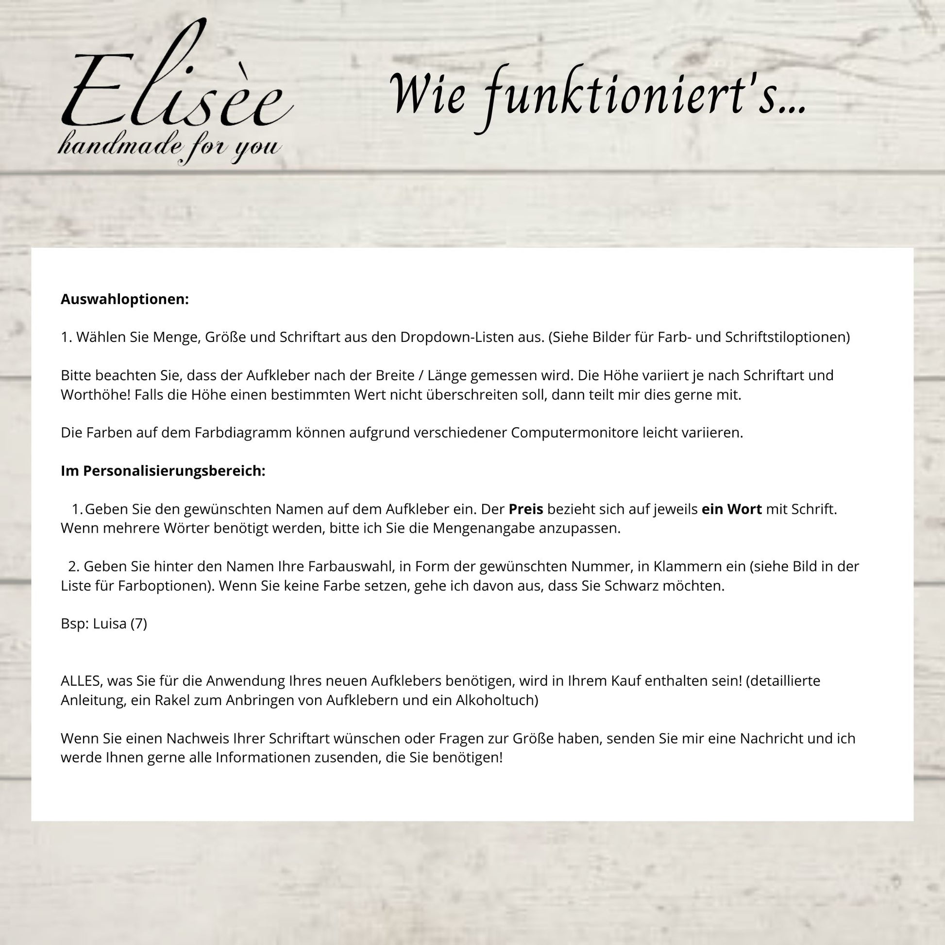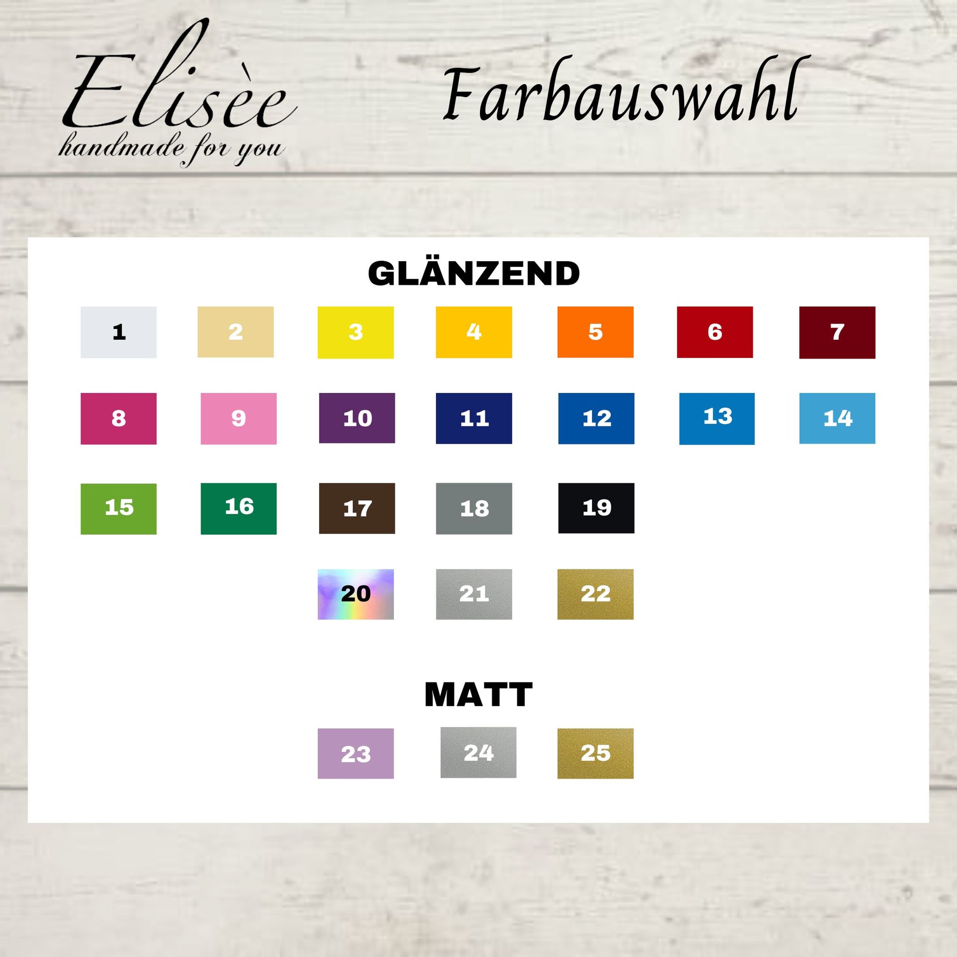 Wir fertigen gerne auch personalisierte Aufkleber nach deinen Vorstellungen an! Schreib uns einfach eine Nachricht über Shopify oder kontaktiere uns per E-Mail unter service@elisee.de.